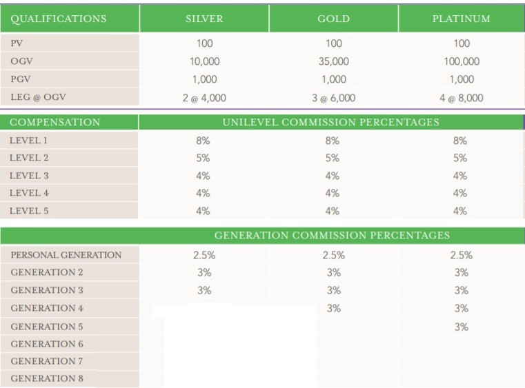 When you reached the ranks of Silver, Gold, and Platinum, you begin to earn what are called “generational commissions” on top of the uni-level commissions you are already earning.